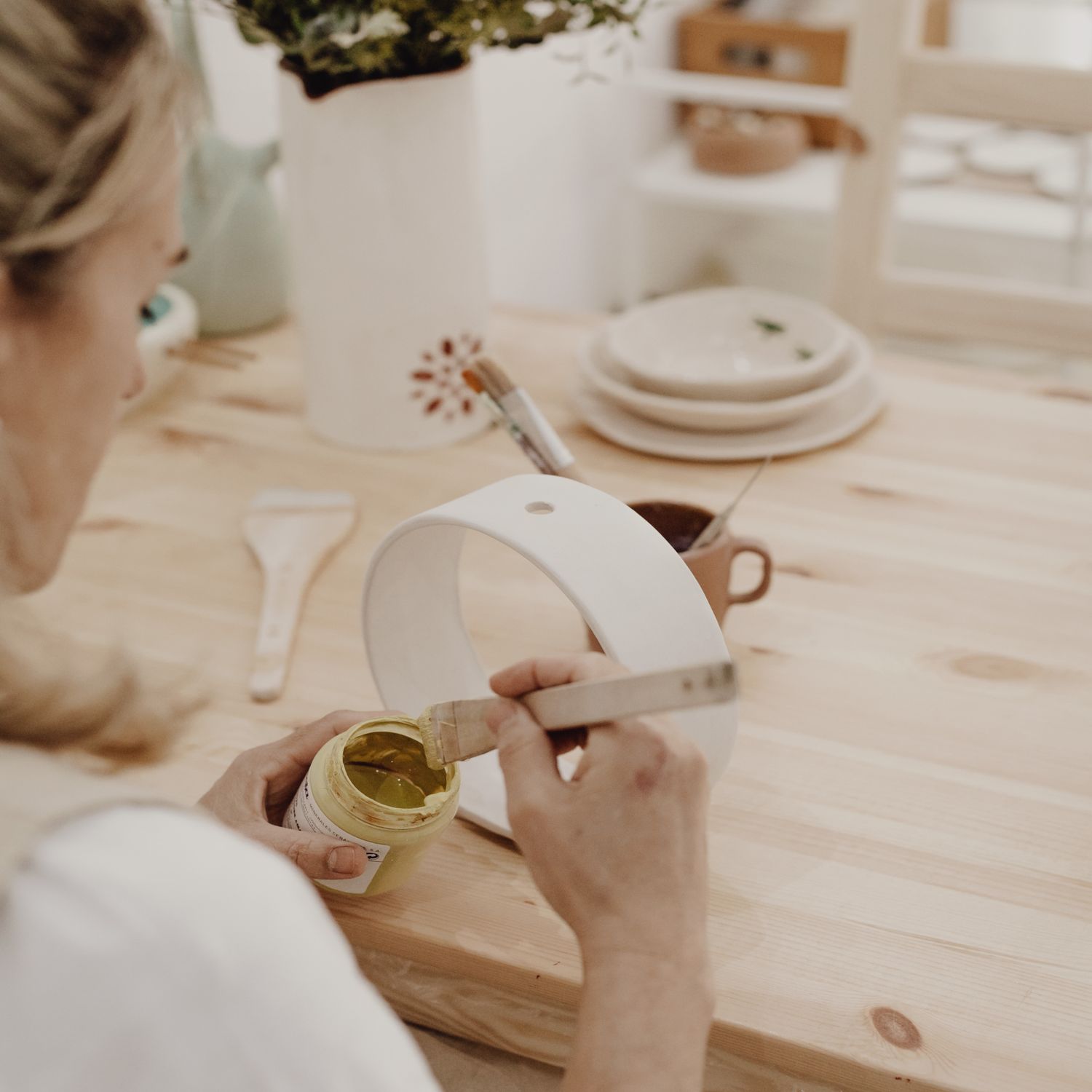Si eres más de pincel que de mancharte las manos, puedes venir a pintar cerámica.